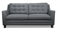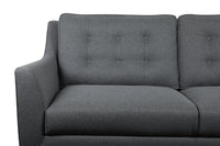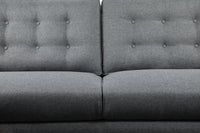 Keep your living room looking stylish when you add this Merrigan sofa. Grey-hued, linen-look fabric is neatly tailored to the furniture frame to make this piece look sharp. High-density foam fills the seating area so you can stay cozy during movie nights and family time. Plus, button-tufting on the back cushions brings an extra boost of plush feeling. For additional support, black plastic feet rest under the couch to ensure this piece won't fall down on the job. This Merrigan sofa creates a chic and welcoming appeal, no matter where you place it in your home.