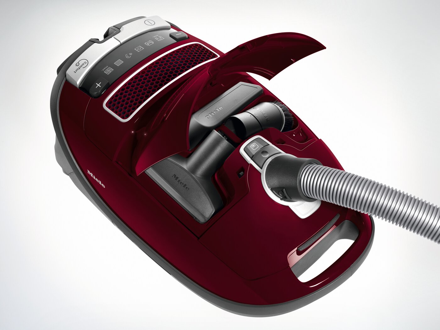 - On-board tools include upholstery tool, dusting brush and crevice tool