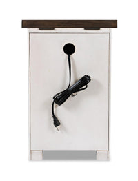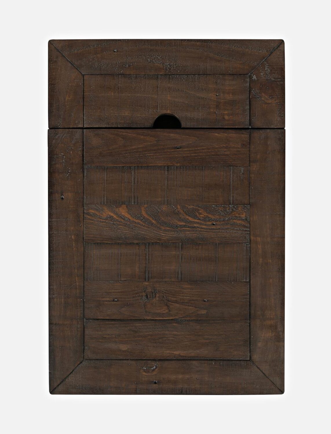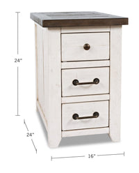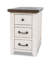 Give yourself some extra storage with rustic charm to spare with this beautifully crafted Morgan chairside table. Constructed with reclaimed pine, this chairside table's rough-hewn finish radiates a stylish, artisan look. A discreet cubby in the tabletop hides a power strip with two USB ports, so your phone can stay on hand and fully charged. Meanwhile, three drawers provide the perfect place for TV remotes, video game controllers and your favourite accessories. Convenience comes with plenty of rugged character with this Morgan chairside table.