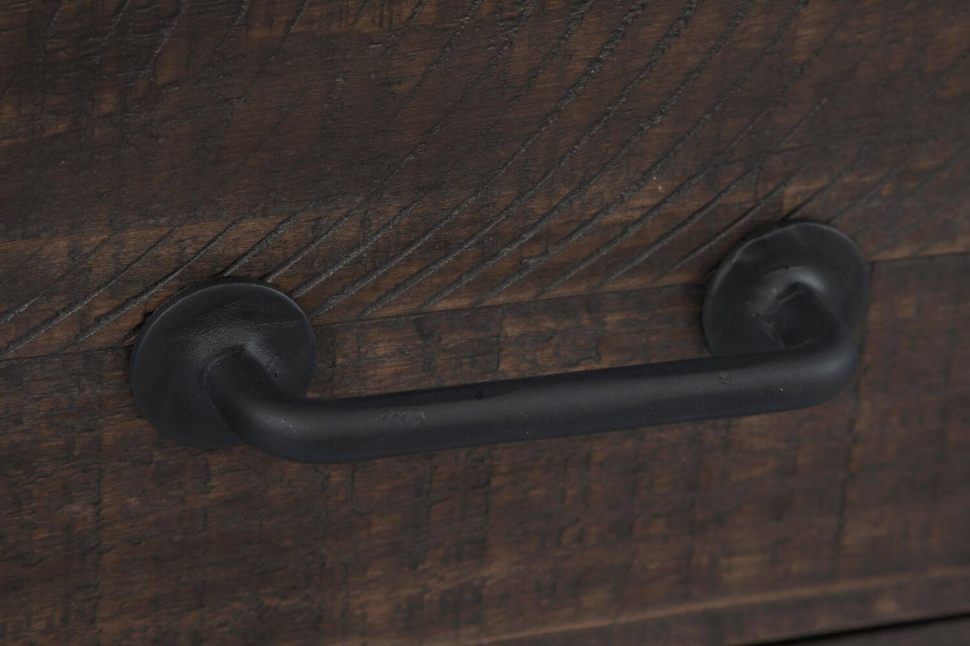 Hardware: Metal handles provide rugged detail to this table.