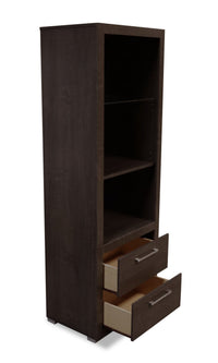 Treat yourself to an entertainment hub that sports a contemporary, clean look sure to blend seamlessly with your home's decor. This Newman wall unit has six drawers and open shelving, so you have plenty of space to store everything from accent pieces to home media accessories. There's room in this media centre to display and store whatever you need -- and in style. The grey-brown wood grain, silver handles and metallic feet add stunning details that will make a statement in your living space.