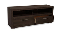 - Two drawers offer storage to organize your entertainment essentials and create a clutter-free space.