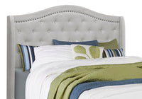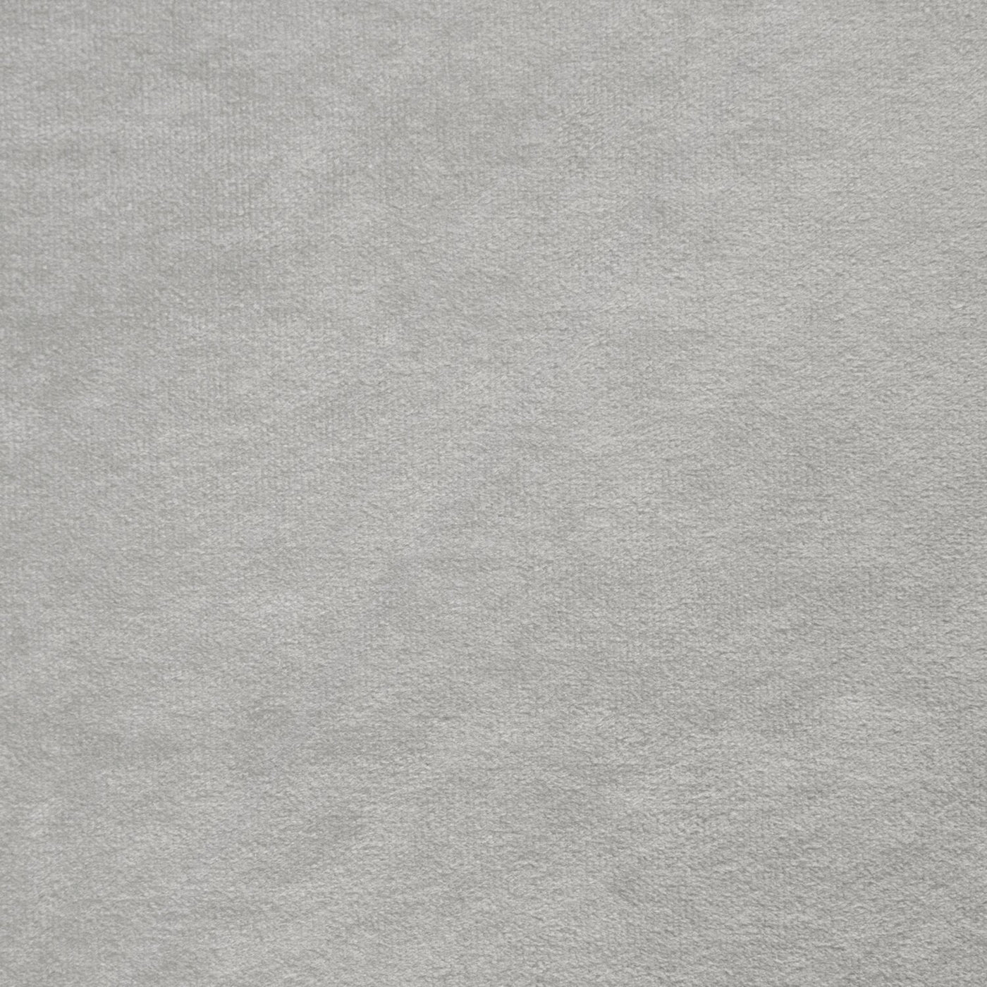 - Floor-length wingback headboard and side and end rails are upholstered in a rich, light grey velvet-look fabric for a soft and cozy appearance.