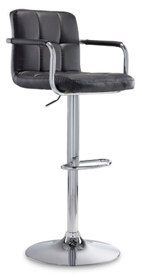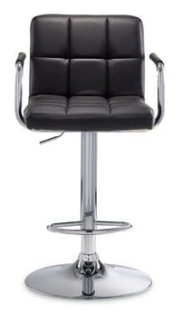 Add this modern, stylish stool to any kitchen or bar space and dine comfortably with your family or friends. Upholstered in soft tufted leather- look fabric, the sleek seat features a comforting backrest and armrest, ensuring increased comfort. The contemporary design is complemented by a chrome pedestal with gas lift and an angular footrest and base. This stool is height-adjustable to match your needs. The casual and contemporary design will easily compliment any type of décor, so your home will not only become comfortable, but more stylish. Customer assembly is required.