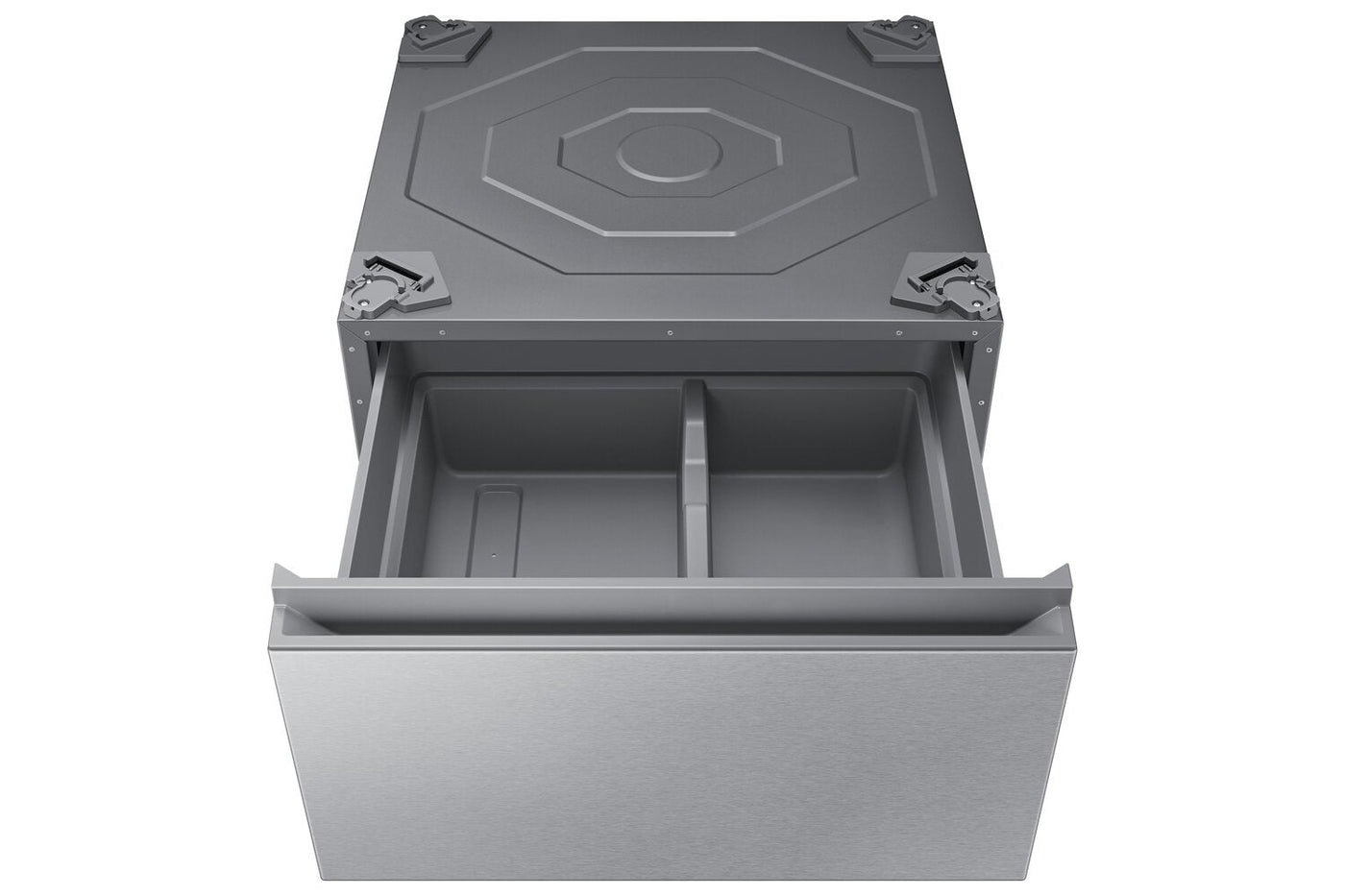 Complete the laundry room of your dreams when you add this handy 27-inch Samsung pedestal to your laundry routine. Forget about bending down to unload your clothes – this pedestal raises your front-loading washer or dryer by more than a foot so you can stop straining your back. Plus, a helpful storage drawer makes the perfect spot to store all of your cleaning supplies, detergents and other laundry day essentials. Compatible with your Samsung 27-inch front-load washer and dryer (sold separately), this pedestal will help you stay organized and upright.