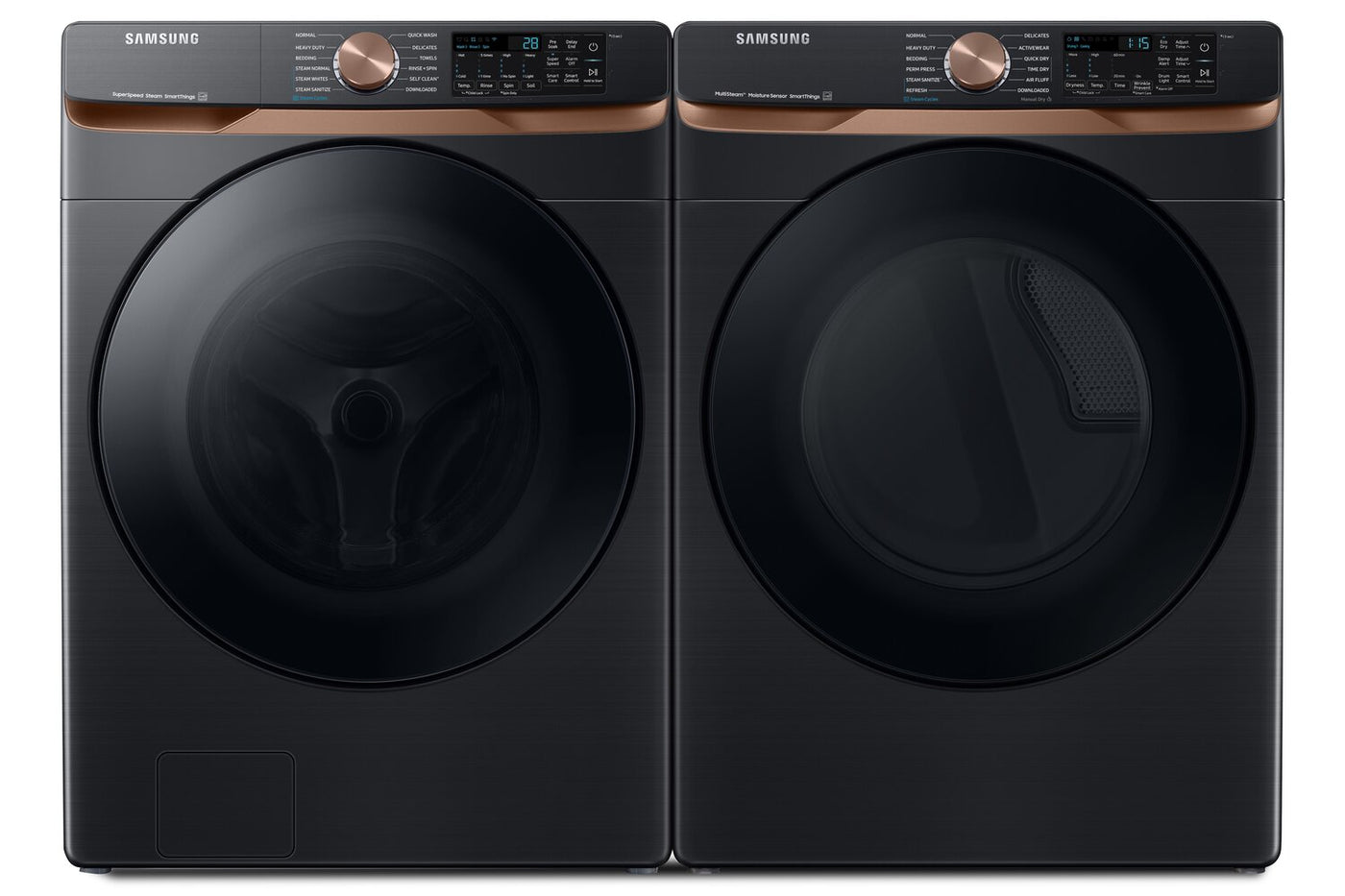 Revolutionize laundry day with this large capacity Samsung pair. A Super Speed wash cycle makes quick work of messes for those busy days, and steam powerfully blasts through odour while remaining gentle on your favourite pieces. The sensor dry function in the dryer adjusts the time and temperature of each cycle based on how much moisture is in the fabrics. Plus, the Smart Care feature detects and diagnoses problems, and provides easy troubleshooting solutions using the Samsung app.