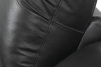 - Italian-finished black genuine leather covers the entire seating area with luxurious comfort.
