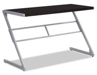 This sleek, compact Sheraton desk in a simple contemporary design adds style and functionality to your workspace. The smooth and spacious dark taupe faux wood-grain laminated surface made from quality material provides plenty of room for a laptop, lamp and other office essentials. Plus, the sturdy Z-shaped black metal base gives that modern look. This desk easily compliments a student's room or any place you have carved out as your office and creative space. Quick to assemble, you'll have your work area set up in no time.