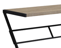 This sleek, compact Sheraton desk in a simple contemporary design adds style and functionality to your workspace. The smooth and spacious dark taupe faux wood-grain laminated surface made from quality material provides plenty of room for a laptop, lamp and other office essentials. Plus, the sturdy Z-shaped black metal base gives that modern look. This desk easily compliments a student's room or any place you have carved out as your office and creative space. Quick to assemble, you'll have your work area set up in no time.