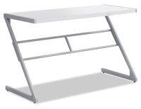 This sleek, compact Sheraton desk in a simple contemporary design adds style and functionality to your workspace. The smooth and spacious dark taupe faux wood-grain laminated surface made from quality material provides plenty of room for a laptop, lamp and other office essentials. Plus, the sturdy Z-shaped black metal base gives that modern look. This desk easily compliments a student's room or any place you have carved out as your office and creative space. Quick to assemble, you'll have your work area set up in no time.