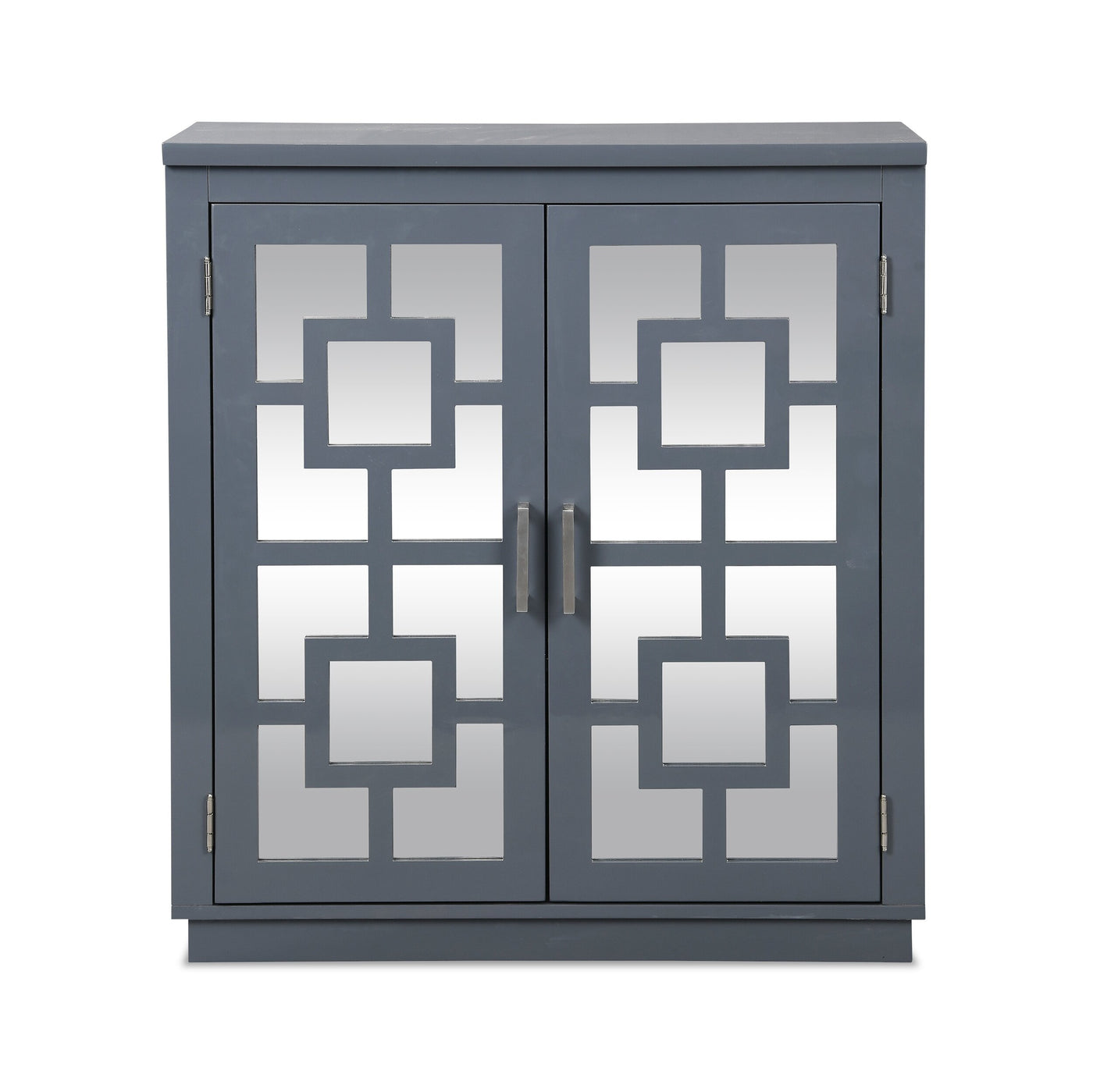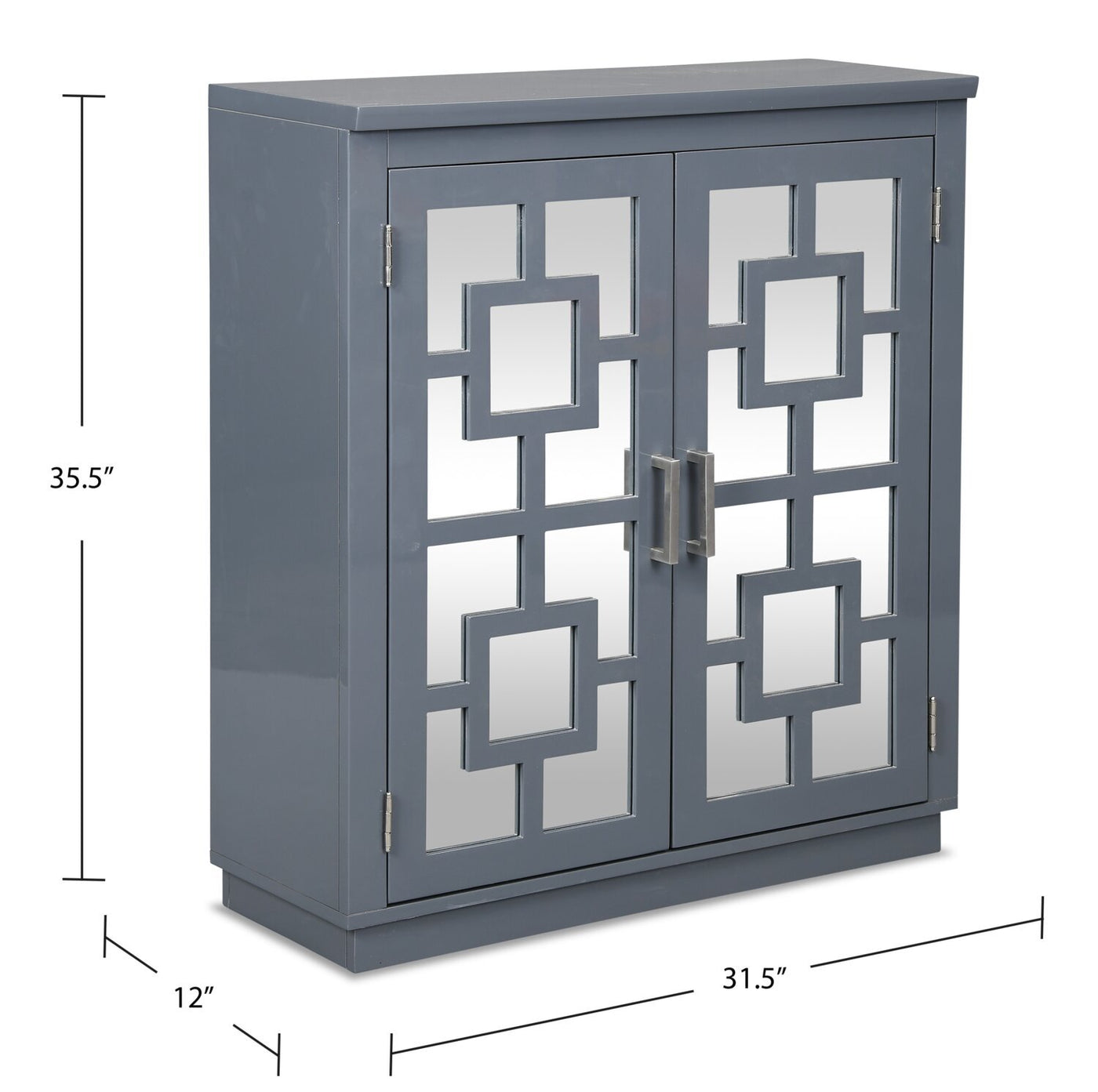 When you need some extra storage, this Stavelot accent cabinet is ready help with a pinch of vintage vibes and a dash of dazzling glam. Mirrored cabinet doors help hide the contents inside while adding an extra sense of depth and spaciousness to the room. The paint is finished in a high gloss to accentuate its shimmering mirrored display. Behind the doors, two adjustable shelves lend options for organizing your household knick-knacks. The clean lines presented by this piece starts with the flat top to provide the perfect place for photographs or flowers. Then watch this piece really pop when you place it beneath a mirror or wall art.