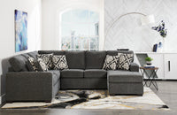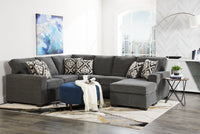 Lay the scene in your living room with this trendy Stratford sectional. Broad track armrests and clean lines give a neutral, contemporary impression, while fabric piping and bold accent pillows in black and grey add a touch of dashing intrigue. The brushed linen-look fabric is lush and soft, and the deep grey tone brings comfort and style. Plus, thanks to the spacious seats and soft padding, the whole family can curl up in comfort together. Embrace peace and quiet in your household and let the fair Stratford welcome you home.