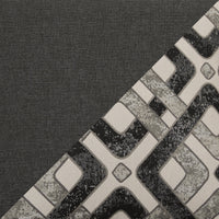 Accent Pillows: Six accent pillows in a patterned charcoal, beige and white fabric.