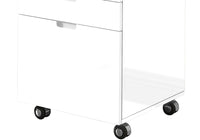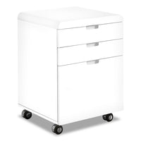 Complete your workstation with this compact and functional Talpa filing cabinet. A modern white gloss finish is easy on the eyes and it can be placed anywhere thanks to caster wheels. Plus, its top surface can usefully house a printer. Two convenient letter-size drawers easily accommodate files, papers, letters or books, while the third and bottom drawer handles legal-size documents, so that you have multiple convenient storage options. Accented with simple modern handles, this unit has no lack of style. The Talpa is there to help you reach your potential, no matter the task at hand.