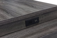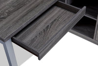 Trendy and minimalist, the Tempest corner desk is sure to make your office space feel like home. Get motivated to take on a full day of work with multiple storage options to help keep all your belongings organized. A filing cabinet drawer keeps your paperwork neat and easy to access, while other drawers make the perfect spot for your favourite pens and sticky notes. The distressed grey finish complements the silver accents to make this desk modern yet elegant. Plus, charging outlets help you stay plugged in all day long.