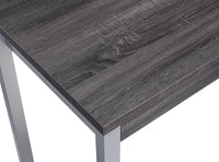 - The distressed grey colour and silver accents make this desk a sleek addition to your office.