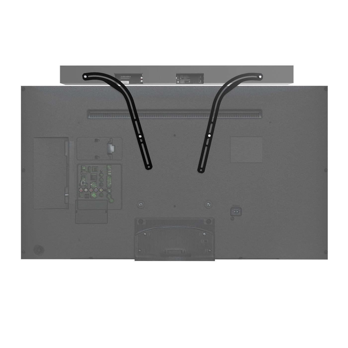 The SB100 universal sound bar mount allows you to secure virtually any sound bar to your flat panel TV. Designed to fit discretely above or below your screen, this 2-piece bracket is constructed out of solid steel and safely holds up to 22 lb. Use it with a wall mount to maintain proper orientation of your speaker, or attach it above your TV to avoid obstructing your IR sensor while using a stand.