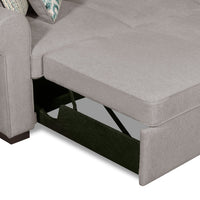 Welcome everyone into your home and onto this two-piece Haven sectional and storage bed. Great for smaller spaces, this piece functions as a great place to lounge during the day, and a perfect place for overnight guests. The fabric is finished in a light grey tone to provide both a neutral, chic appeal in your space and will keep everyone cozy and comfortable. Plus, matching fabric piping outlines each of the high-density foam cushions, highlighting the thickness and comfort awaiting your enjoyment.