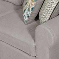 - Soft, cool grey chenille fabric covers the entire sectional for ultimate coziness.