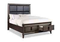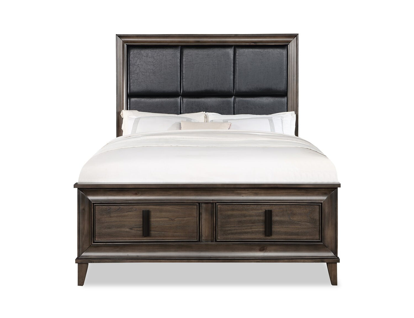 - Queen Headboard, Queen Storage Footboard, Side Rails and Slat Roll.