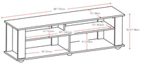 - This TV stand accommodates televisions up to 65 inches in screen size.