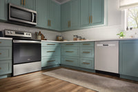 Make room for more with this Whirlpool dishwasher. An adjustable upper rack can be lowered or raised to accommodate plates, wine glasses and more, while an 11-inch Cup Shelf frees up extra space below. Also included are a Boost Cycle that provides extra effort for stubborn messes and a Triple Filtration wash system that filters food particles and cleans water between wash stages. Plus, take advantage of the Quick Cycle, which will have your plates and glasses ready for dinner guests in a flash.