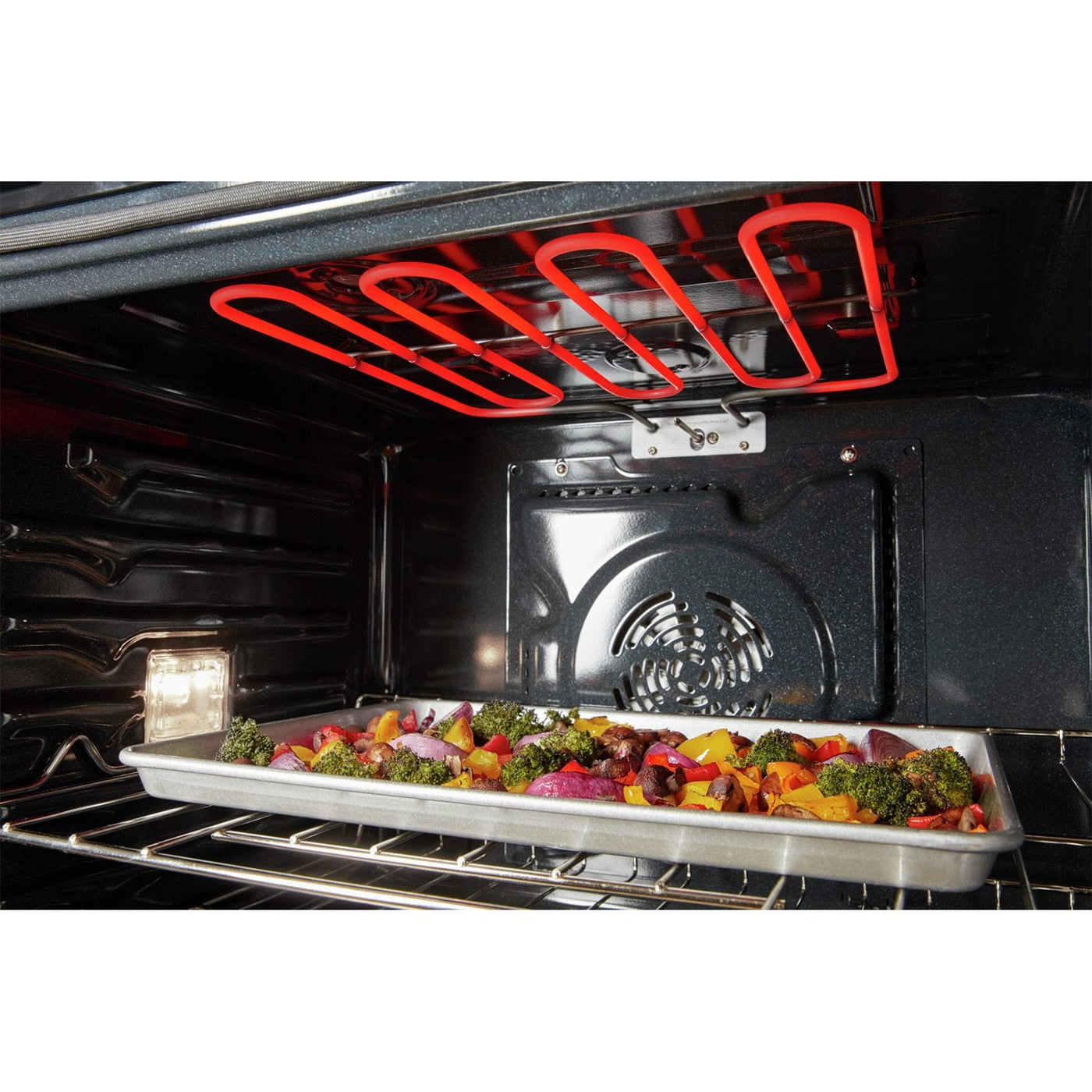 - Fan Convection Cooking - Cook meals with a fan in the back of the oven that distributes hot air more evenly than traditional baking, so you can bake on multiple racks at once.