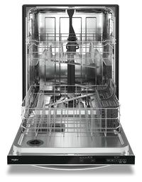 Save yourself the dirty work with this large capacity Whirlpool dishwasher. A deep top rack fits even your biggest cookware so you get sparkling pots and pans without the elbow grease. Don’t fuss with wash settings – the sensor cycle automatically adjusts itself based on how dirty each load is for a fantastic clean every time. Heavy cycle and high temperature wash options blast through grease with ease to get dishes clean and residue-free. Plus, a high heat Sani Rinse® option leaves your dinnerware fresh and sparkling.
