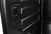 This Whirlpool undercounter refrigerator features a fingerprint-resistant, stainless steel finish and matching, curved handle for a sleek, modern look. The spacious, 5.1 cu. ft.-capacity interior is illuminated by bright LED lighting that shines a spotlight on your food and beverages. All of your stored groceries remain at the optimal temperature, thanks to the Temperature Sensor Alert that immediately brings any sudden changes in temperature to your attention.